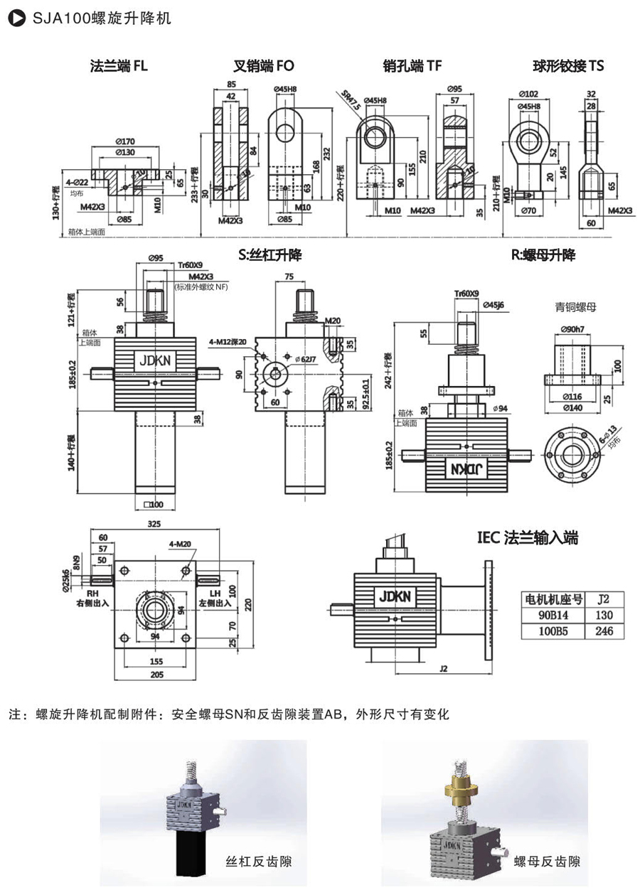 SJA螺旋升降机又称SJA丝杠升降机,本产品是一种超重部件,可起升、下降及借助附件实现推进、翻转及各种高度位置调整等功能。结构及装配形式可选,可按客户要求定制,安装方便、使用灵活、功能多、配套及形式多、可靠性好、使用寿命长等优点。