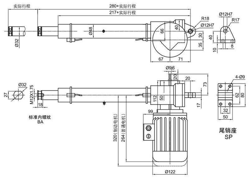 产品名称:LAP32系列电动推杆